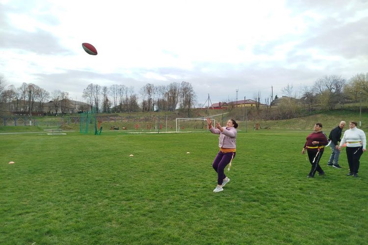 Саме практична частина викликала найбільше емоцій: учителі змогли відчути себе справжніми гравцями, випробувати техніку та динаміку гри, попрацювати в командах і відчути азарт змагання. За словами учасників, флаг-футбол виявився доступним, захопливим і таким, що легко адаптується до шкільних умов, особливо для сільських шкіл з невеликою кількістю дітей, бо передбачає 5 гравців у одній команді.