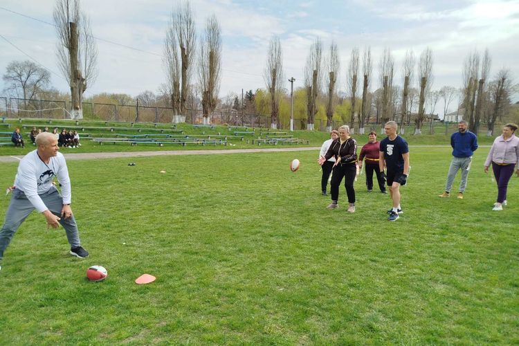 Саме практична частина викликала найбільше емоцій: учителі змогли відчути себе справжніми гравцями, випробувати техніку та динаміку гри, попрацювати в командах і відчути азарт змагання. За словами учасників, флаг-футбол виявився доступним, захопливим і таким, що легко адаптується до шкільних умов, особливо для сільських шкіл з невеликою кількістю дітей, бо передбачає 5 гравців у одній команді.