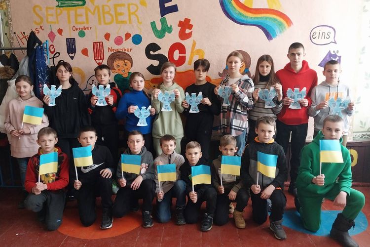 5. У початкових класах проведено інформаційні хвилинки «Герої нашого часу», на яких діти співали Гімн України, малювали долоньки щастя, виготовляли Ангелів пам’яті з побажанням миру та добра;